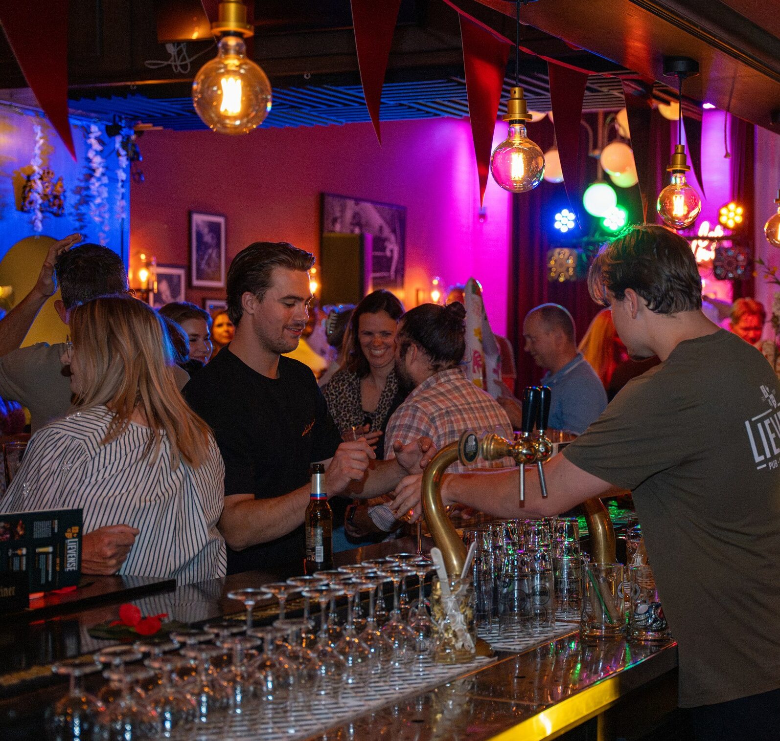 Stap binnen in Café Lievense: een warm bruin café met een knipoog naar een traditionele Engelse pub. Hier voel je je meteen thuis! Met plek voor 150 gasten kun je gezellig poolen, darten of genieten van de livemuziek op het podium.